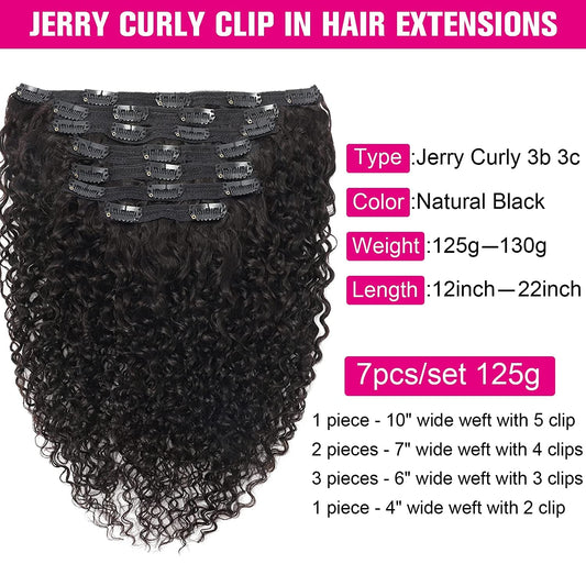 Jerry Curly Clip in Hair Extensions Real Human Hair, 20 Inch 3B 3C Curly Clip Ins 7 Pcs with 24 Clips Thick 8A Brazilian Soft Remy Human Hair Lace Weft Clip in for Black Woman