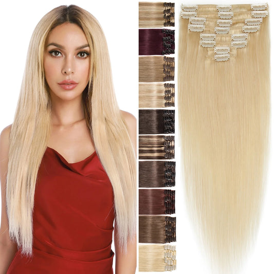 Human Hair Extensions Clip in Hair Extension Full Head Remy Hair Bleach Blonde for Women Straight 8"-24"