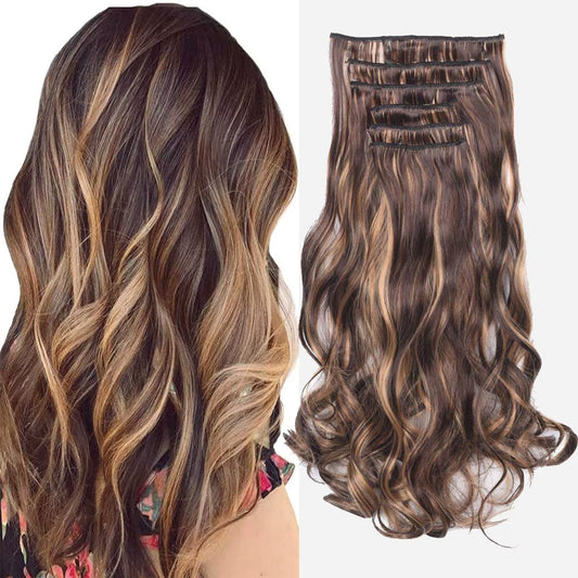 Extensions Long Synthetic Clip in Hair Wavy Clip in Hair Extensions 6Pcs/Set Piece Synthetic Ombre Blonde Brown Thick Hairpieces